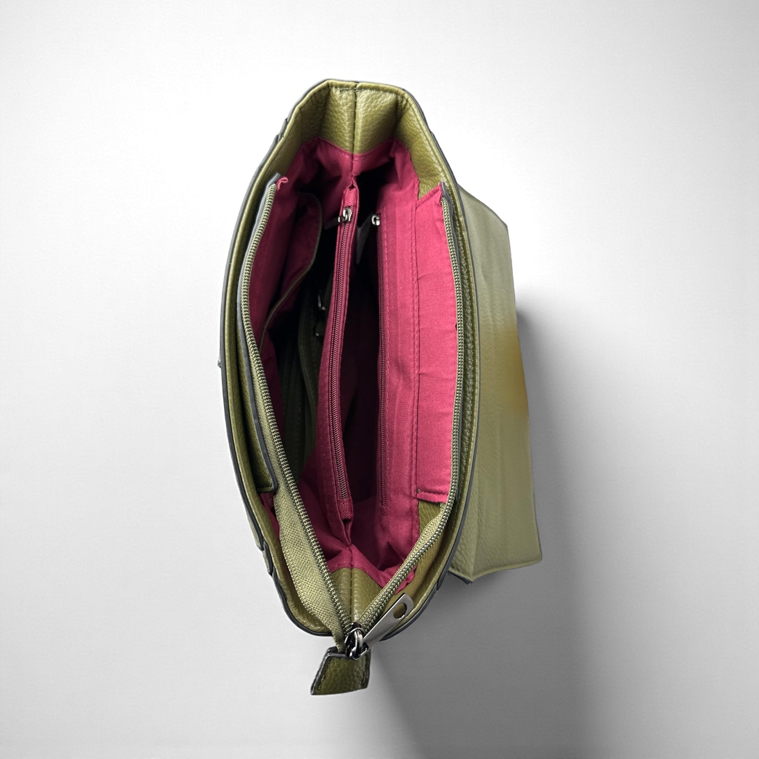 Interno funzionale: Fodera rossa. Scomparti multipli con tasche interne per organizzazione essenziale.