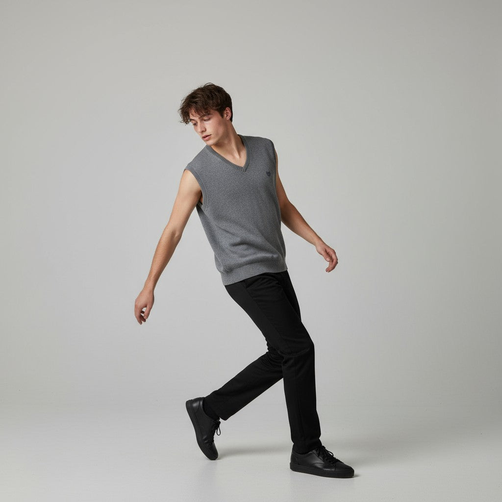 Gilet in maglia di puro cotone, caratterizzato da vestibilità regular fit e design essenziale. Scollo a V e giromanica rifiniti con bordi a coste. Modello monocromo, ideale per layering su camicie o t-shirt.