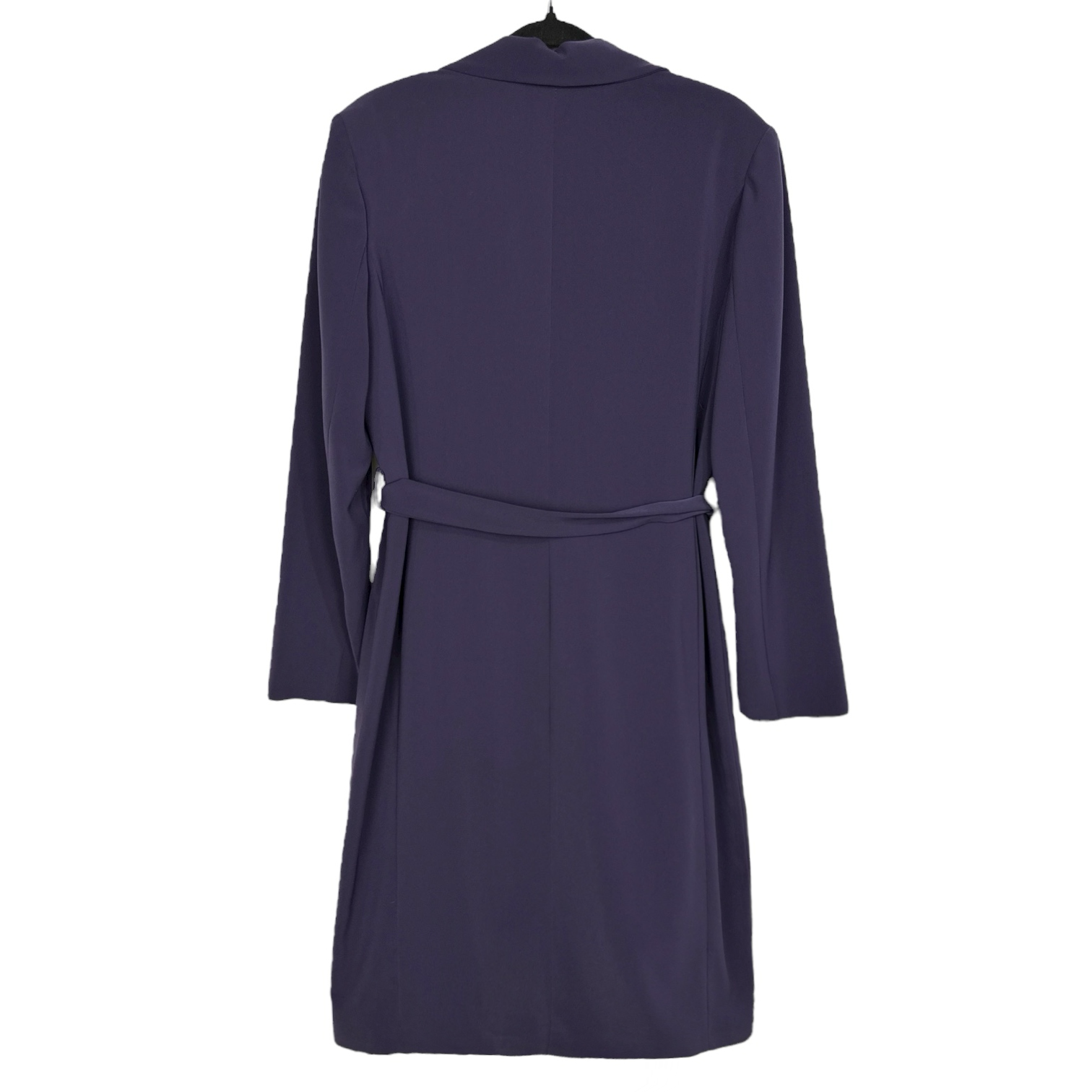 Cappotto lungo in tinta unita. Modello con colletto a revers e chiusura frontale con bottoni. Cintura coordinata in tessuto da annodare in vita. Maniche lunghe e tasche laterali a filetto. Retro liscio con taglio dritto. Interno foderato.
