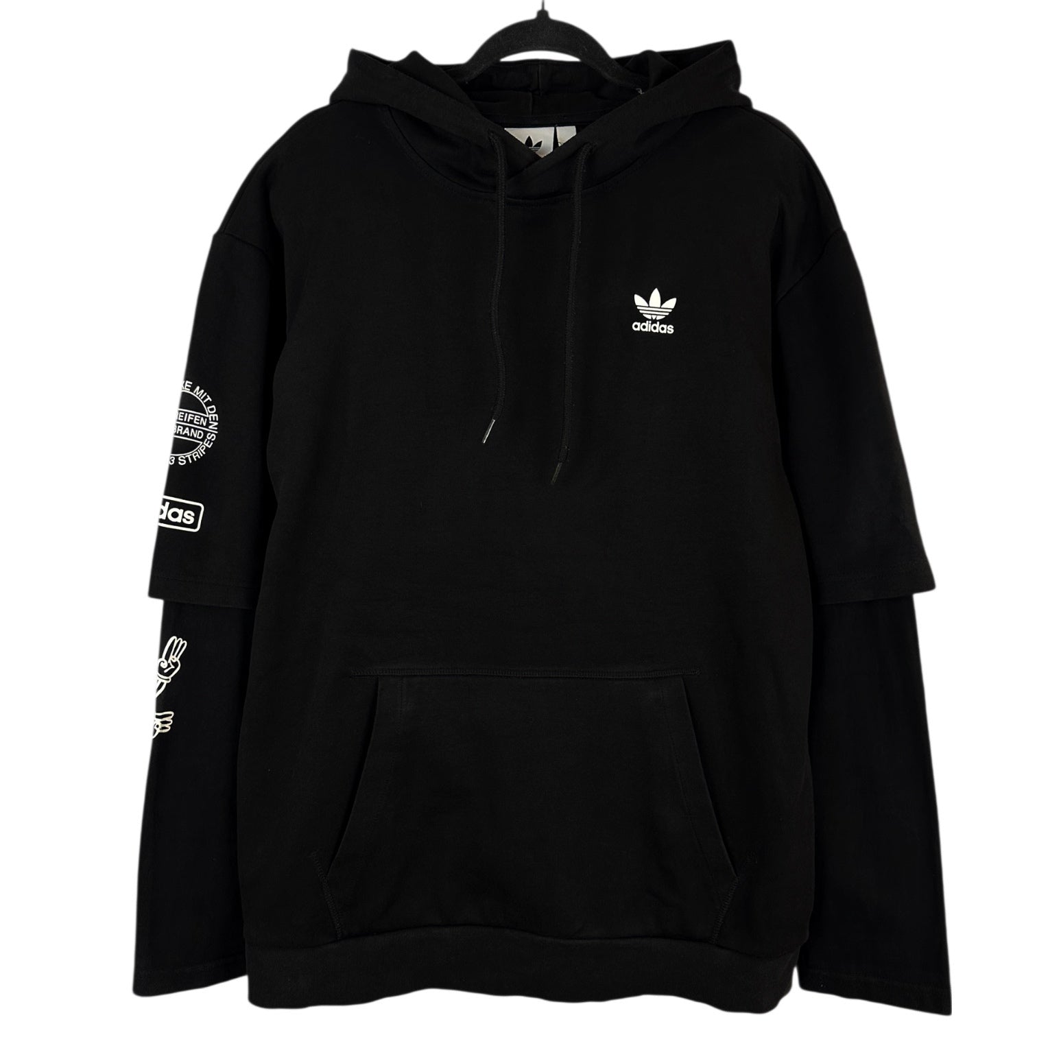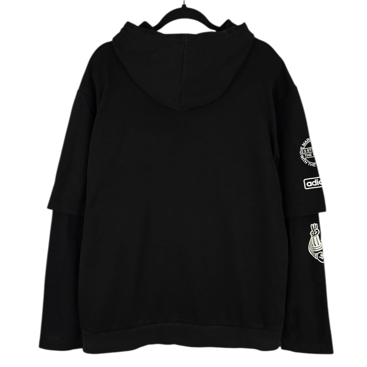 Felpa da uomo, con cappuccio regolabile e tasca frontale a marsupio. Modello a maniche lunghe con struttura layered e vestibilità regolare. Logo Adidas stampato sul petto e grafiche multiple sulla manica sinistra. Design streetwear con dettagli grafici a contrasto.