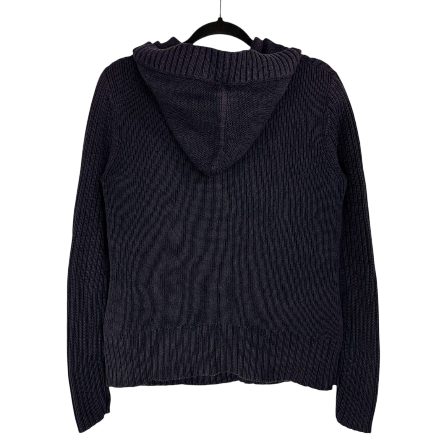 Maglia realizzata in maglia spessa di puro cotone, con struttura compatta e finitura a coste. Il modello presenta cappuccio integrato, apertura frontale con bottoni e tasca centrale a marsupio. La lavorazione a maglia è uniforme e strutturata, con bordi rifiniti a costine su fondo, polsini e profilo del cappuccio.